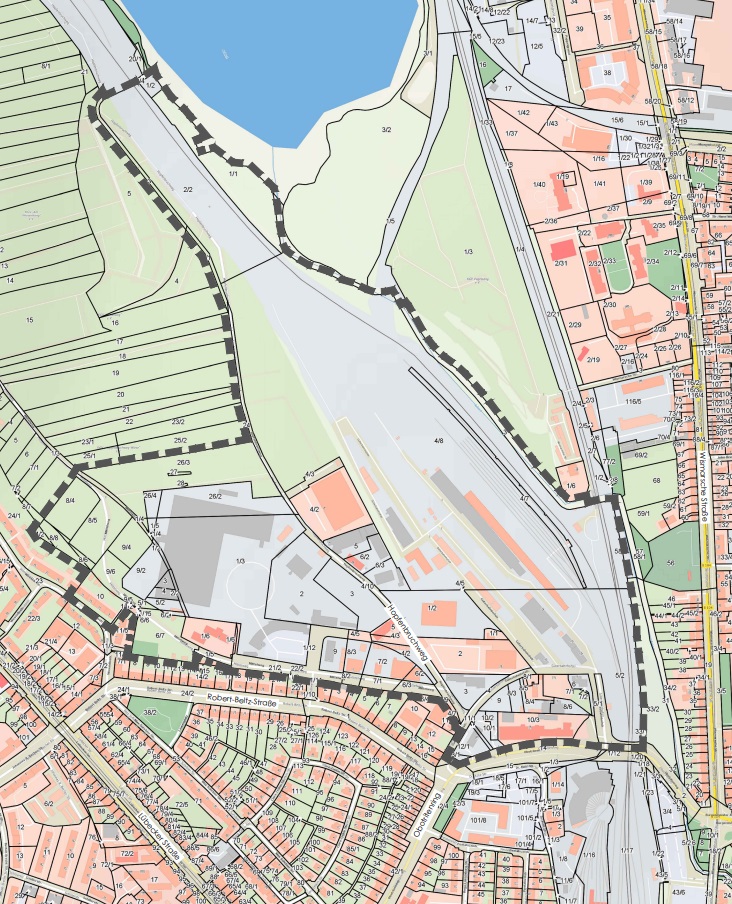 im Eigentum der Deutschen Bahn stehen, sowie privaten Kleingärten in unmittelbarer Nähe