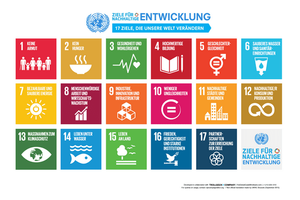 Am 25. September 2015 wurde auf dem UN-Gipfel in New York die „Agenda 2030 für nachhaltige Entwicklung“ verabschiedet. Die darin enthaltenen 17 Ziele für nachhaltige Entwicklung (Sustainable Development Goals – SDG) verknüpfen das Prinzip der Nachhaltigkeit mit der ökonomischen, ökologischen und sozialen Entwicklung.