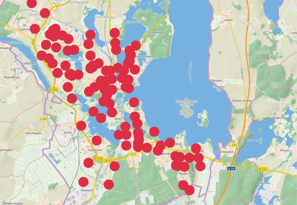 Kitas, Fußgängerzone, die potenziellen Anbauvereinigungen und andere Sportplätze als Fußballplätze, „befriedetes Besitztum“, also Vorgärten, Kleingärte etc haben wir noch nicht markiert… dann wäre die Karte noch mehr von Rot bedeckt… Und gewiss haben wir nicht jeden Hinterhofspielplatz erwischt…