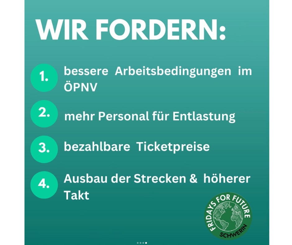 Und dies zeigt sich auch bei den Forderungen, die nun deutlich regionaler sind. Es werden bessere Löhne für Beschäftigte im ÖPNV gefordert, ebenso mehr Personal, bezahlbarer Ticketpreise, ein Ausbau der Taktung und des Streckennetzes.
