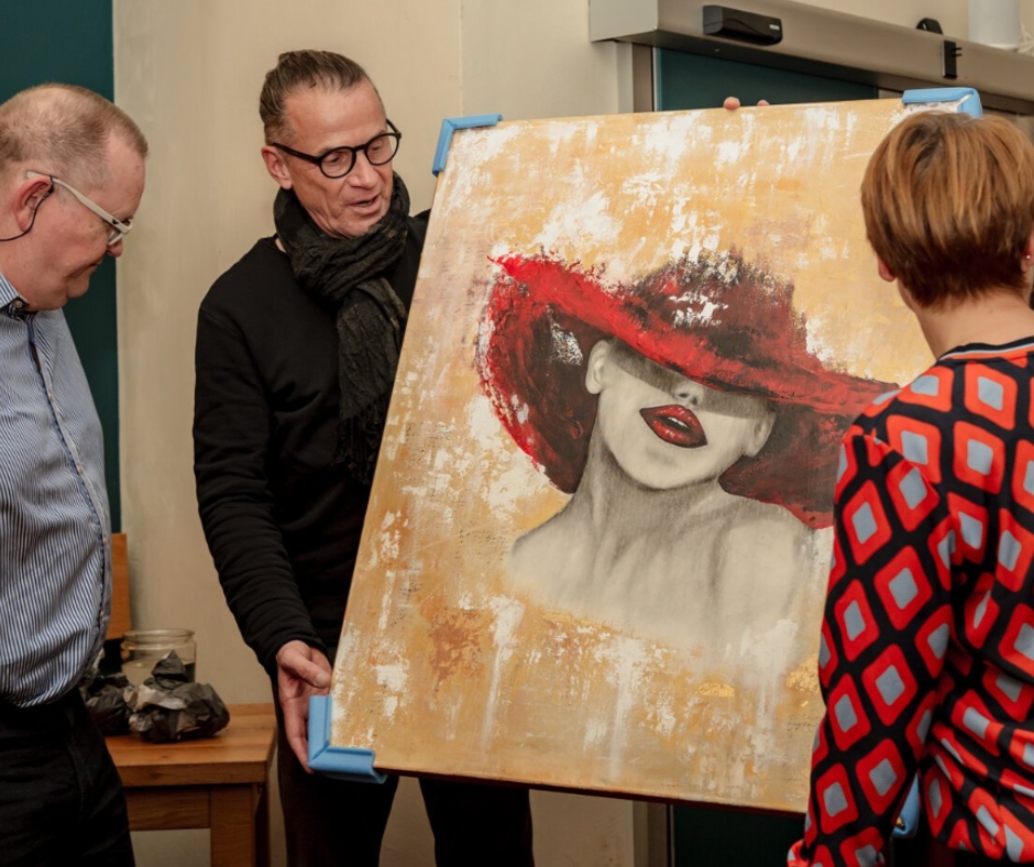 Die Künstlerin „Kreuzberger Artist“ hatte für eine Versteigerung zugunsten des Projektes eines ihrer Werke „Red Hat Lady“ kostenfrei zur Verfügung gestellt. Das höchste Gebot gaben Herrn und Frau Rönndahl von Immo Konzepte ab, ganze 888,- € ließen sie sich das Kunstwerk kosten. Auch dieser Betrag ging in die Spendensumme ein. Foto: Ka_lotta_photography