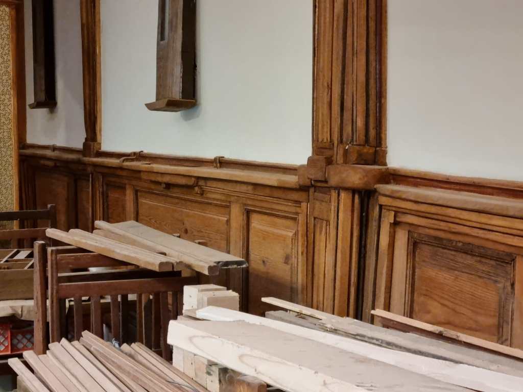 Doch eines scheint klar, wenn es soweit ist, werden in dem kleinen Denkmalgeschützen Gebäude viele Elemente, ob Wandvertäfelung oder die mit Handarbeit hergestellten Sitzbänke eine Vorgeschichte in sich tragen.