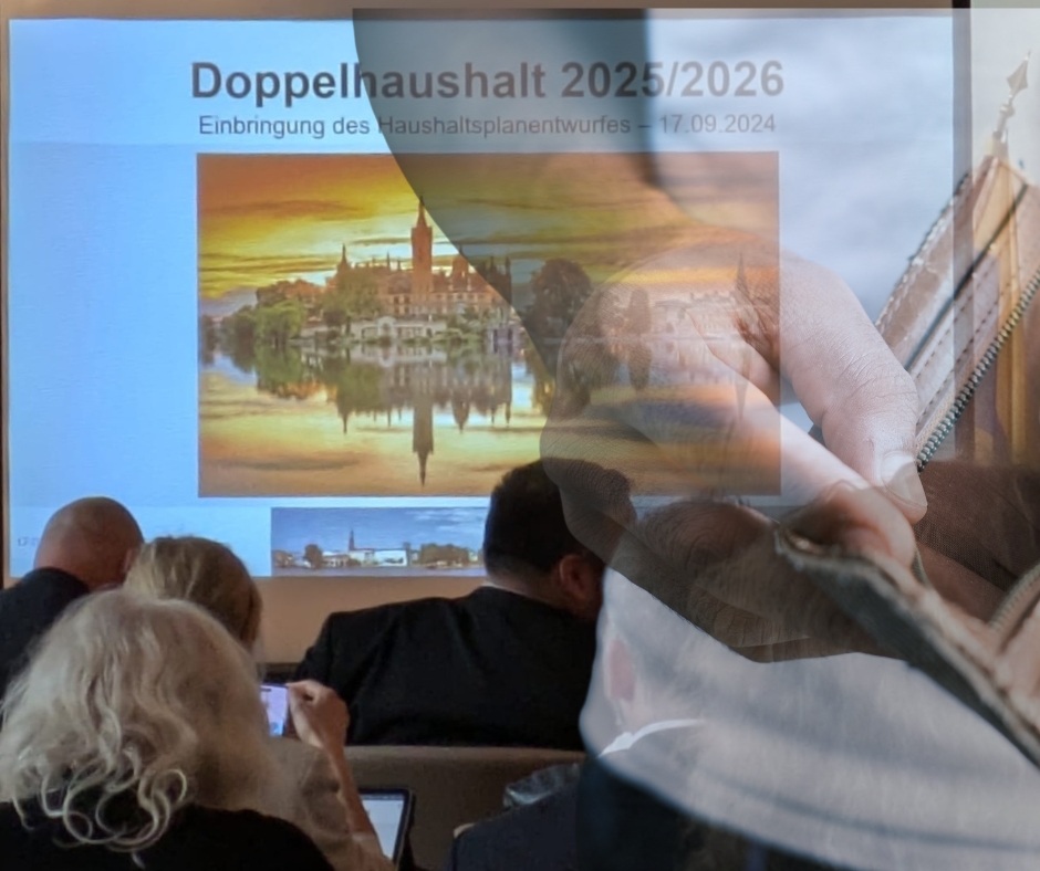 (stm) Hinweis: Trotz sorgfältiger Prüfung handelt es sich bei den hier gemachten Angaben um eine erste Durchsicht des Haushaltsplanentwurfes. Etwaige Korrekturen werden zeitnahe vorgenommen. Eines ist klar. Das Leben in Schwerin würde teurer werden Die Landeshauptstadt Schwerin stellt zur Stunde (Stand 18:30 Uhr) im Rathaus den Haushaltsplanentwurf für 2025/2026 vor. Nach erster Durchsicht steht fest … Deutliche Steuer und Gebührenerhöhungen in Schwerin geplant! Das steht im Haushaltplanentwurf 2025/2026 weiterlesen