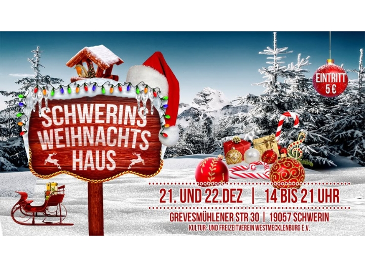 Seit 14 Uhr, des heutigen 21 Dezember hatt es geöffnet, dass Schweriner Weihnachtshaus. Noch bis Sonntagabend, den 22. Dezember 2024 öffnet in der Grevesmühlener Straße 30 in Schwerin das erste Weihnachtshaus der Stadt seine Türen. Die Organisatoren, bekannt durch das Halloween Horror House, laden Groß und Klein ein, zwischen 14 und 21 Uhr ein festlich geschmücktes Haus mit verschiedenen Themenzimmern zu erkunden. Neben Weihnachtsfiguren und Fabelwesen, die die Besucher erwarten, soll auch der Weihnachtsmann persönlich vor Ort sein und Kinderwünsche entgegennehmen.