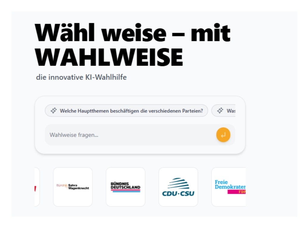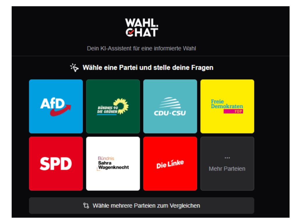 Ähnlich wie Wahl-Chat, aber mit der Möglichkeit, bis zu fünf Parteien zu vergleichen. Verfügbar ab dem 9. Februar. ✔ Nur im Browser verfügbar ✔ Vergleich von mehreren Parteien möglich ✔ Entwickelt von einem Thüringer KI-Unternehmen