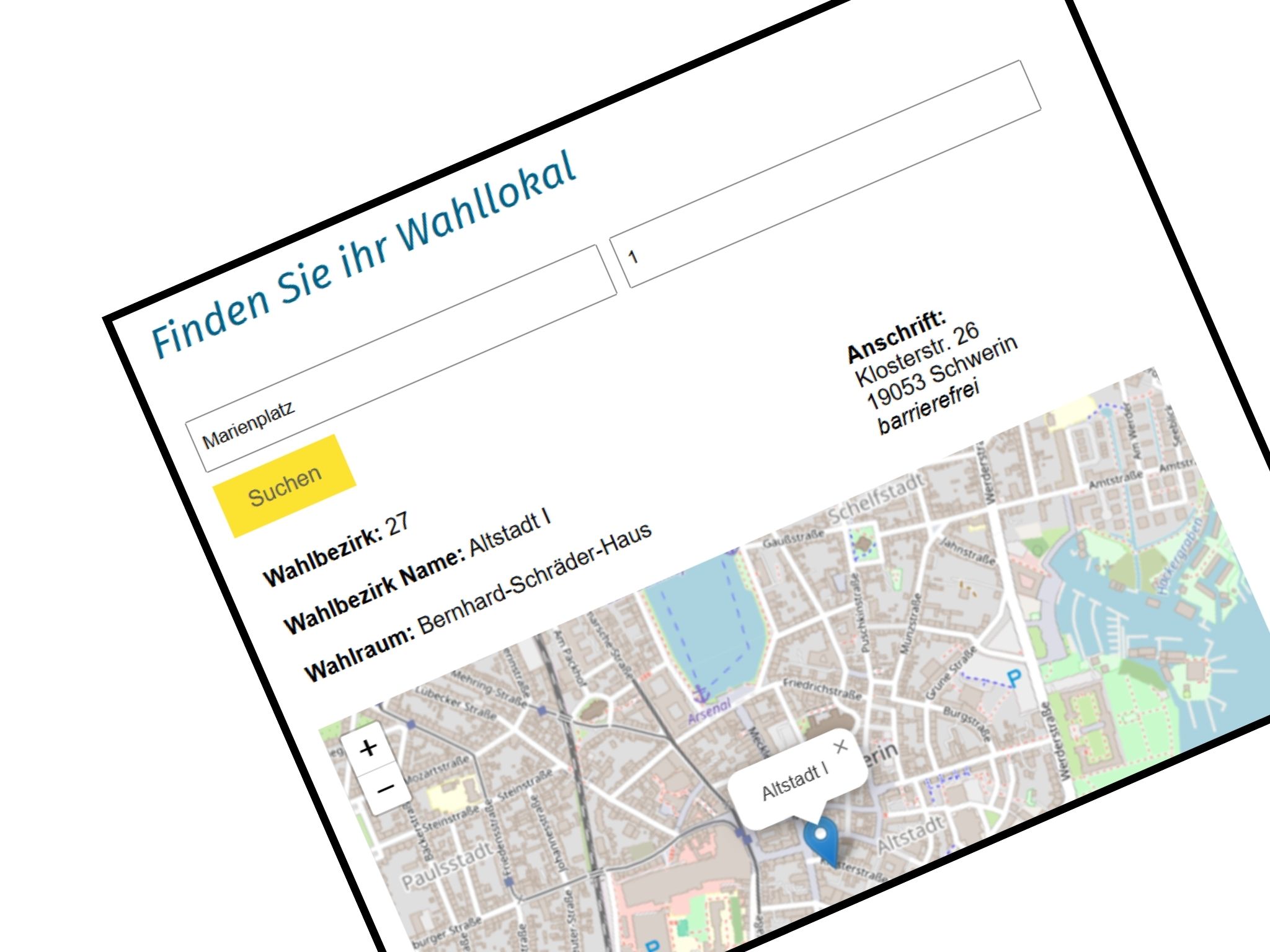 (fab) Morgen ist es soweit: Die Bundestagswahl 2025 steht vor der Tür, und die Landeshauptstadt Schwerin macht es ihren Bürgerinnen und Bürgern leicht, ihr Wahllokal zu finden. Unter www.schwerin.de/politik-verwaltung/politik/wahlen/wahllokale/ hat die Stadt einen praktischen Wahllokalfinder online gestellt. Einfach die Adresse eingeben – und schon wissen Sie, wo Sie am 23. Februar Ihre Stimme abgeben können. … Wo ist mein Wahllokal? Stadt stellt Wahllokallfinder online. weiterlesen