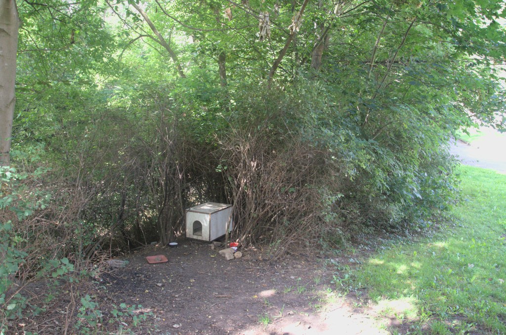 Weil die Katzen im Mueßer Holz aktuell in einer eher „suboptimalen“ Umgebung leben, trotz gewiss liebevoll gemeinter Fütterung, muss gerade mit Blick auf den kommenden Herbst und Winter ein sichereres und geborgeneres Umfeld für die Kitten und Katzen geschaffen werden, in dem sie auch medizinisch betreut werden können.