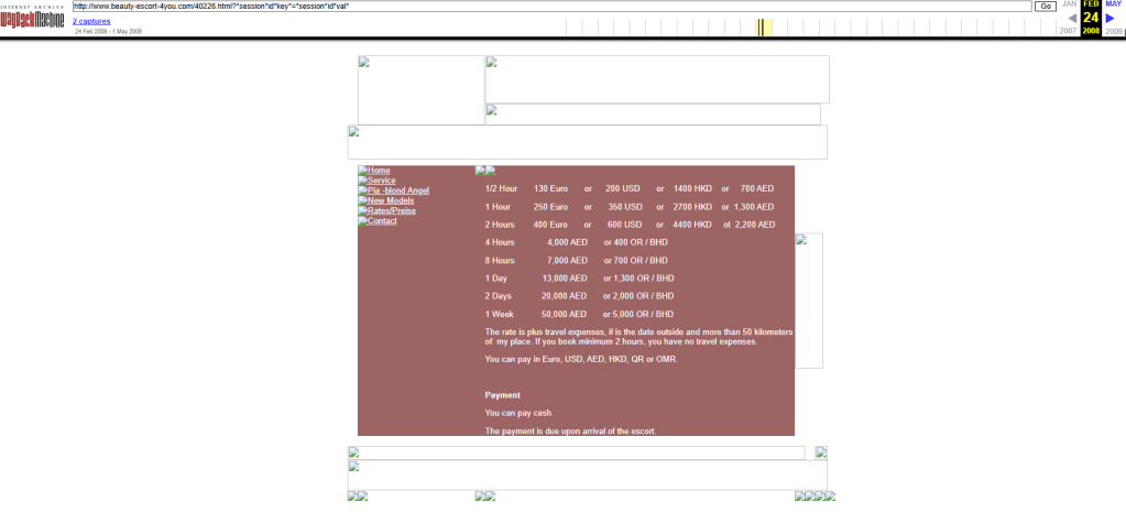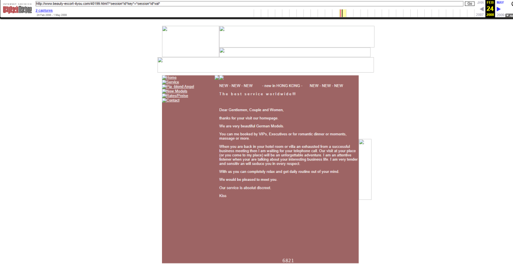 Hier Screenshots der Website aus 2008. Heute zeigt die Website übrigens ebenfalls Escort Dienste für Dubai an. In Kyrillisch. Abrufbar hier: Beautiful german escort model in Hong Kong