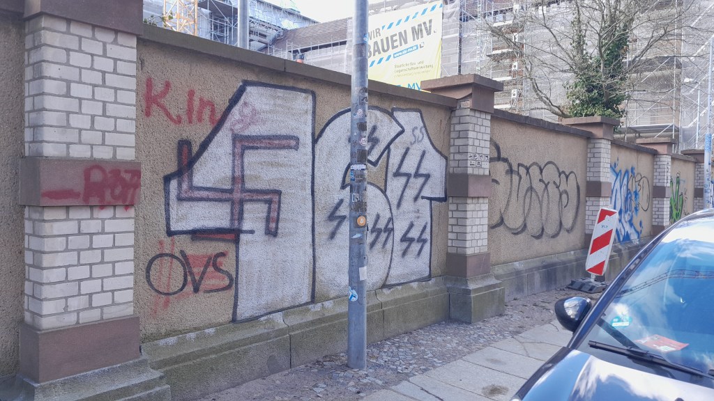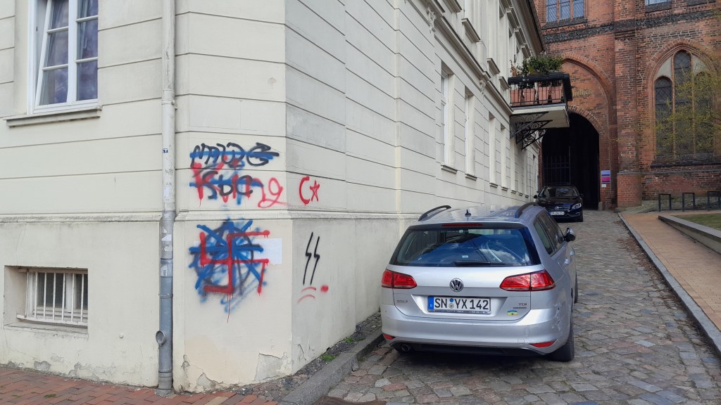 In der Schweriner Innenstadt ist es in den vergangenen Tagen zu einer Serie von politisch motivierten Sachbeschädigungen gekommen. Unbekannte Täter sprühten verfassungsfeindliche Symbole, darunter verbotene SS-Runen und Hakenkreuze, im Stadtgebiet und übermalten dabei offenbar gezielt Schriftzüge aus dem linken Spektrum. Der Staatsschutz hat die Ermittlungen aufgenommen.